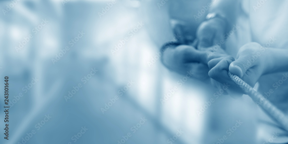 hands pulling rope and business background, collaboration and cooworking