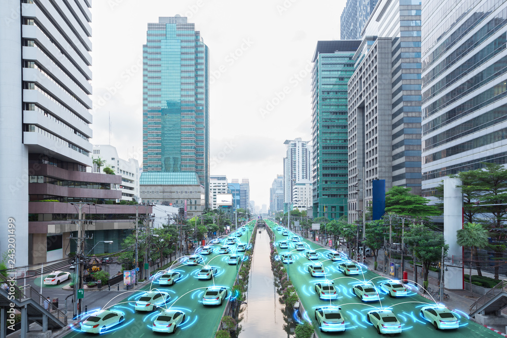 Smart cars with automatic sensor driving on metropolis with wireless connection