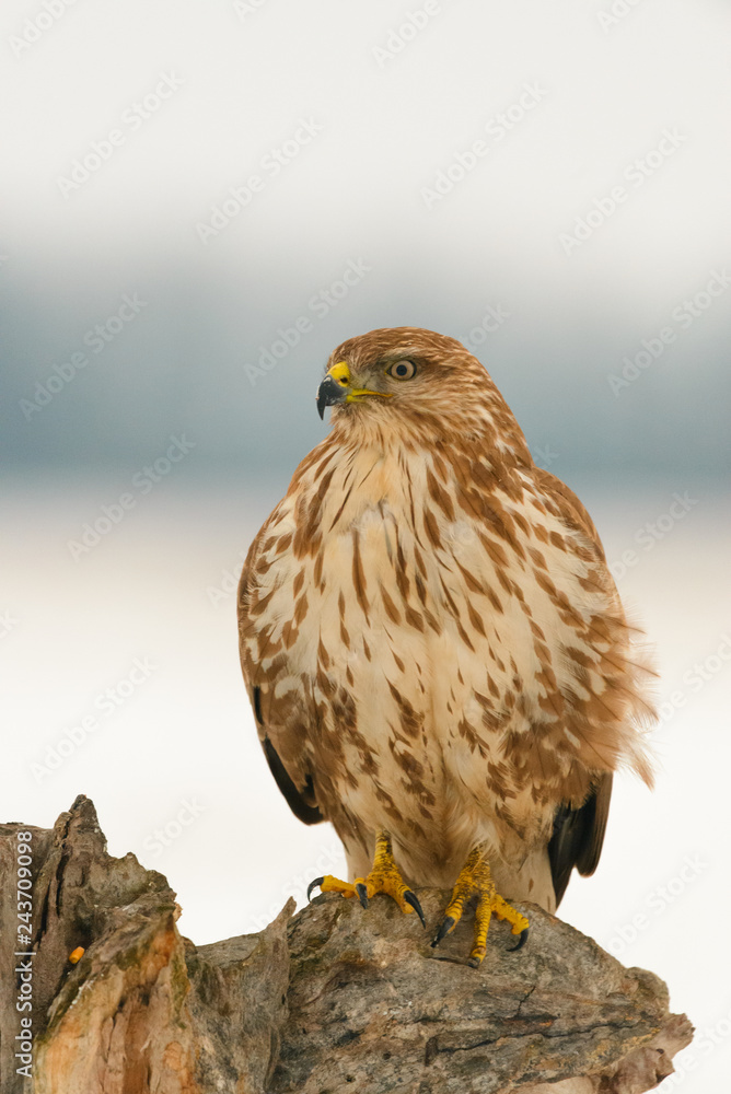 Photo of common buzzard buteo buteo on a tree