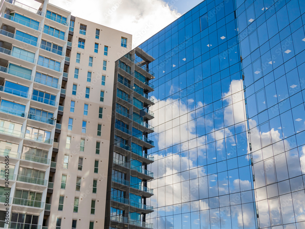 Sliema, Malta, on January 5, 2019. Modern city architecture. Fragment of a facade of the multystoried building