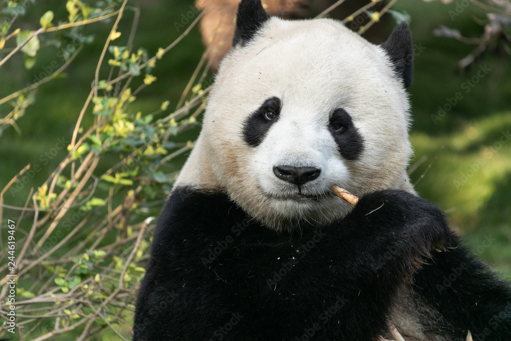 giant panda biting bamboo shoot