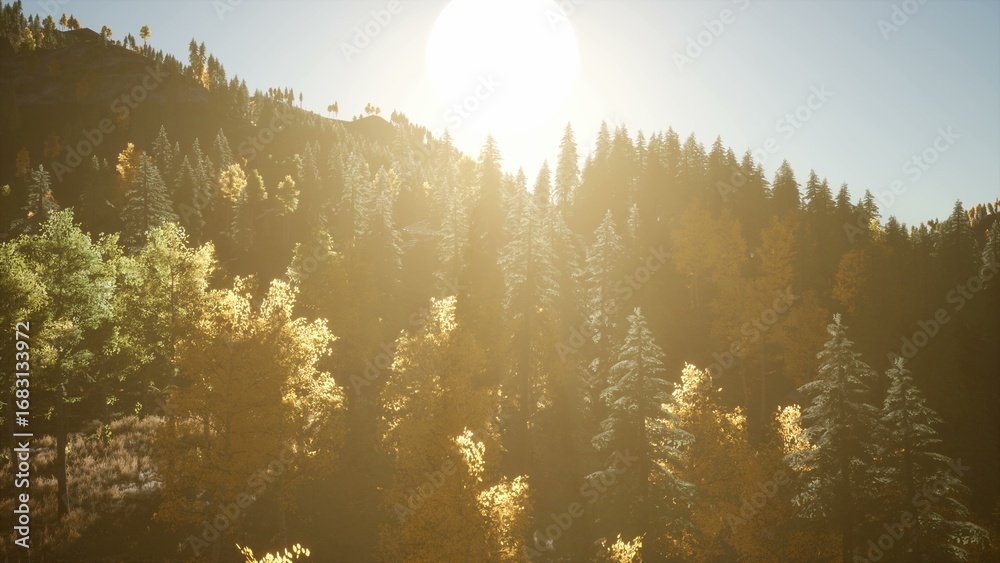 Closeup of a group of tiny mushrooms growing on the forest floor surrounded by green moss and pine needles on a dark background. Frog's eye view.