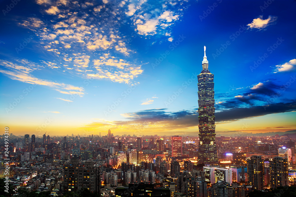 The scene of Taipei 101 building and Taipei city Taiwan on December 14 2017. The photo has been taken from the top of Elephant Mountain, Taipei