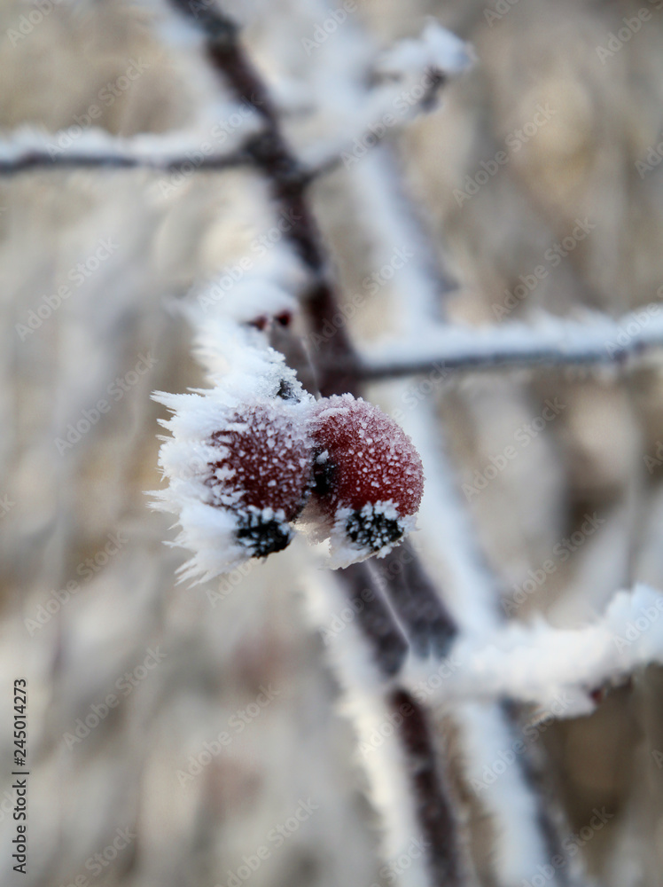 Hagebutte im Raureif