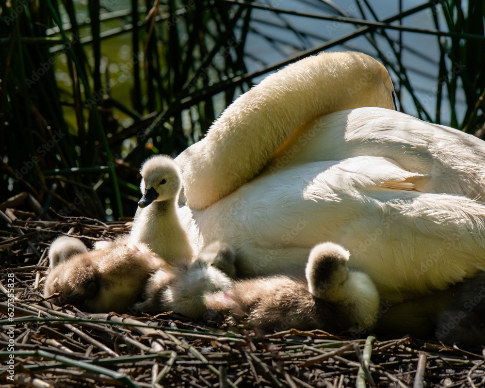 Frozen time. A clock on an ice next to the water. Extreme weather situation. Snow falling on a clock in a nature. Golden old clock.