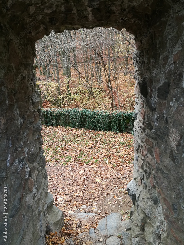 Blick durch ein Tor der Burg Rodenstein im Odenwald