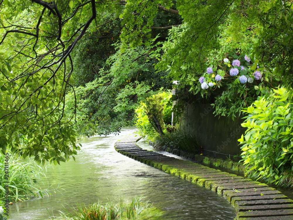 アジサイ咲く、せせらぎの小径