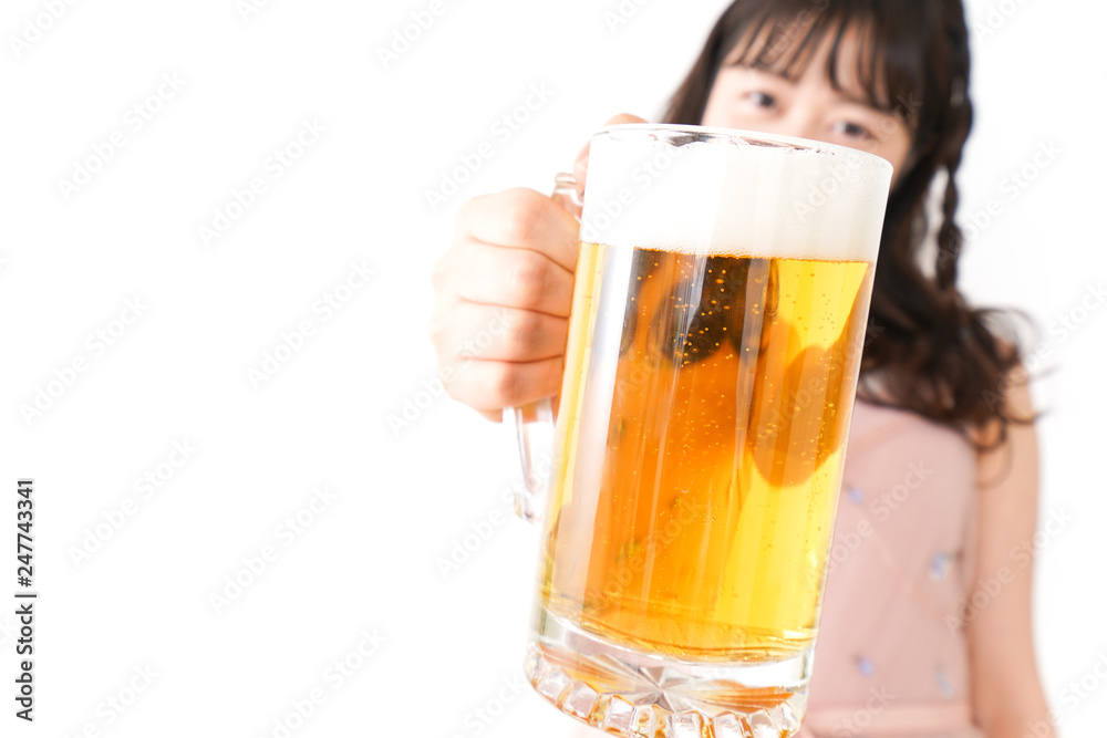 グラスを持ちビールを飲む若い女性