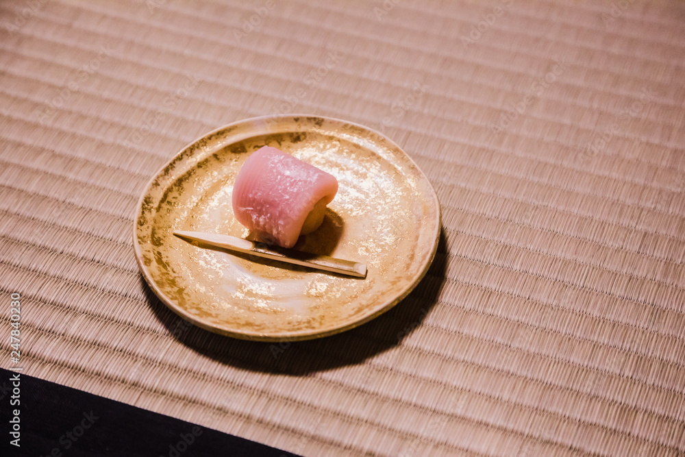 Closeup photo of a mochi dessert (sweet) in Kyoto Japan