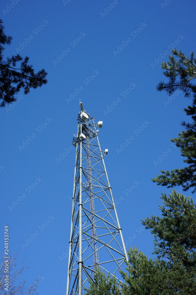 Steel tower in the forest to provide internet connection.
