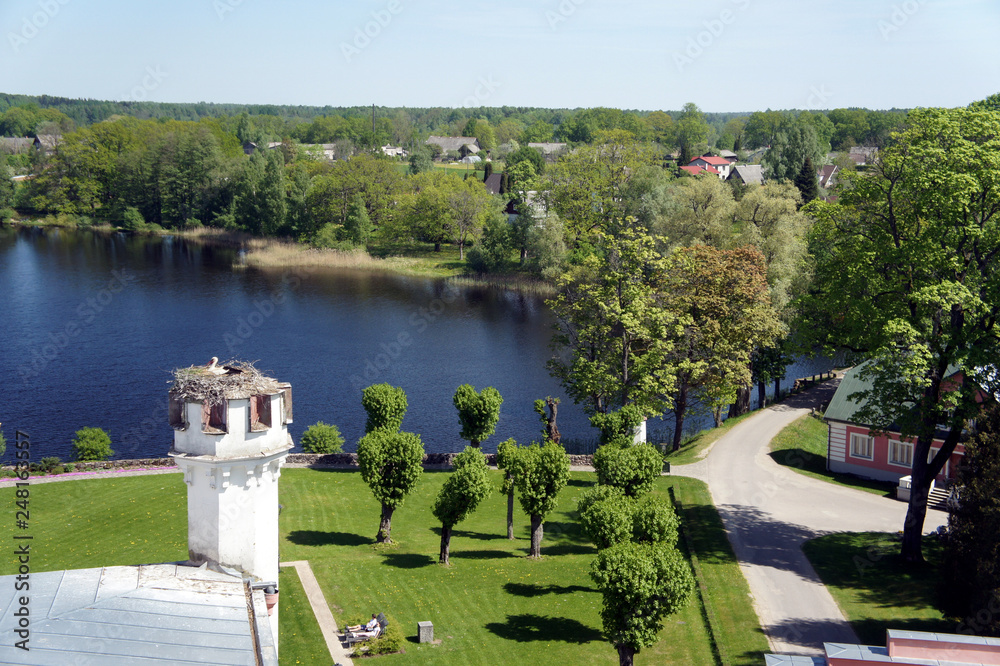 A nest of storks on one of the towers of the Birini Castle.