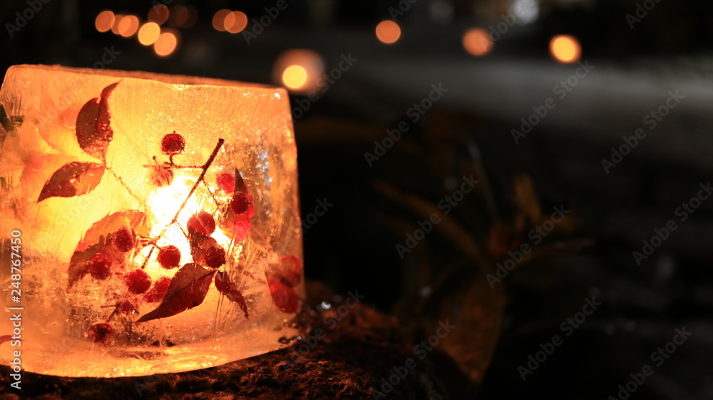 中津川 馬籠 氷雪の灯祭りのライトアップ街道