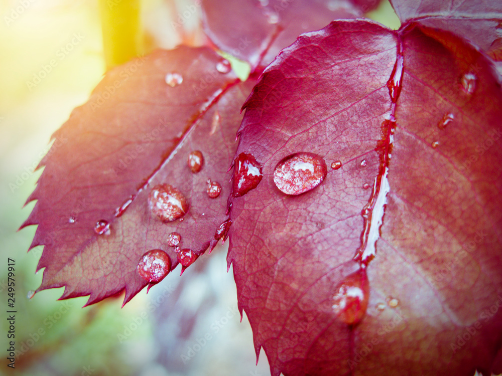 Red leafs with droplets