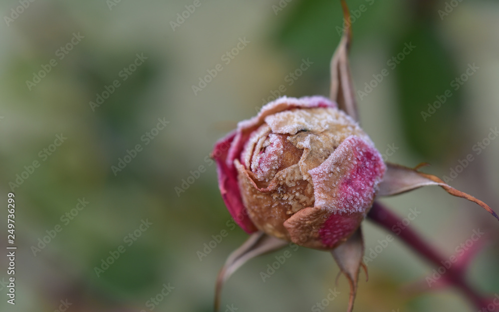 rosenknospe mit frost im winter