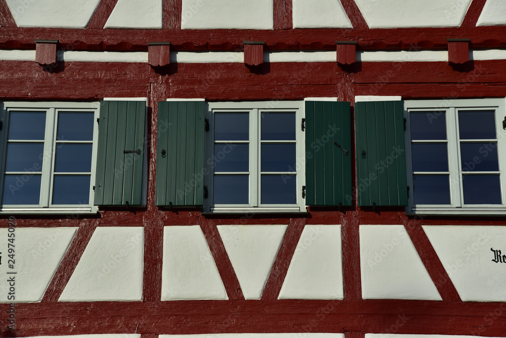 Fassade eines historischen Fachwerkhauses mit Fenstern