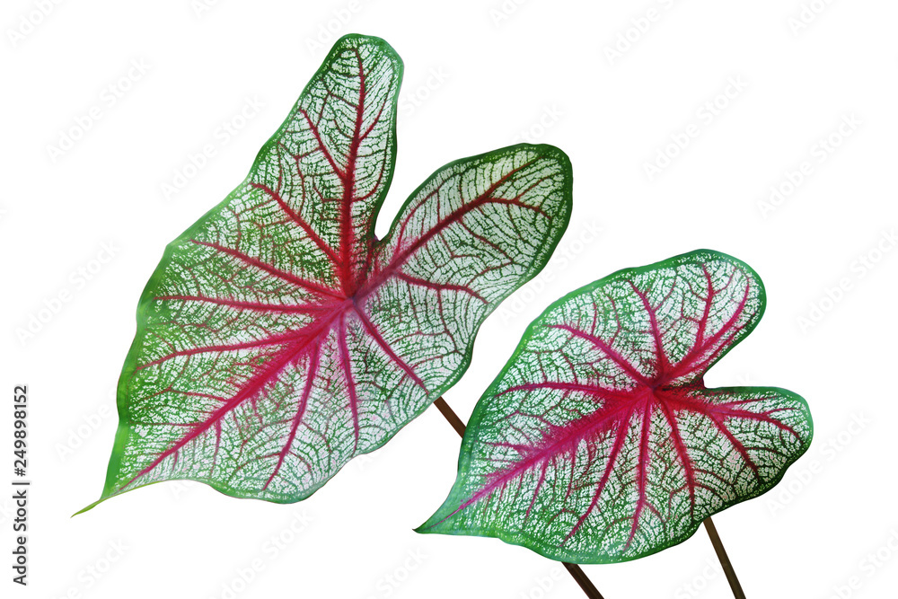 Fresh Green Leaves Red Veins of Caladium Tropical Plant Isolated on White Background