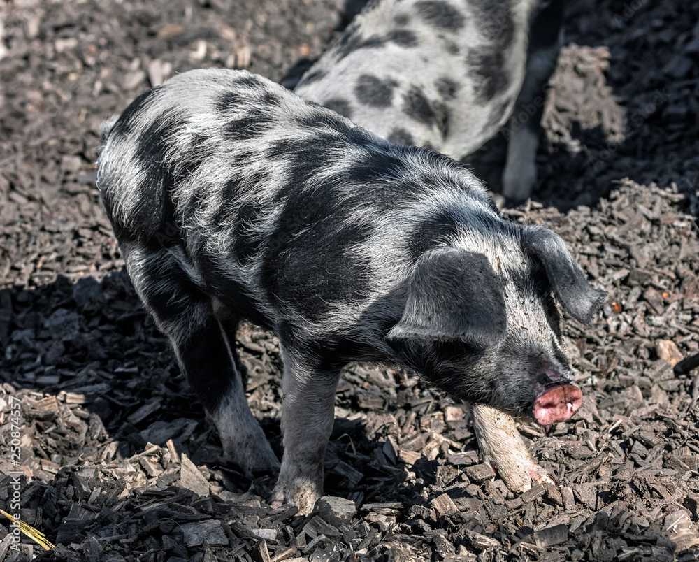 Portrait of spotty domestic piglet