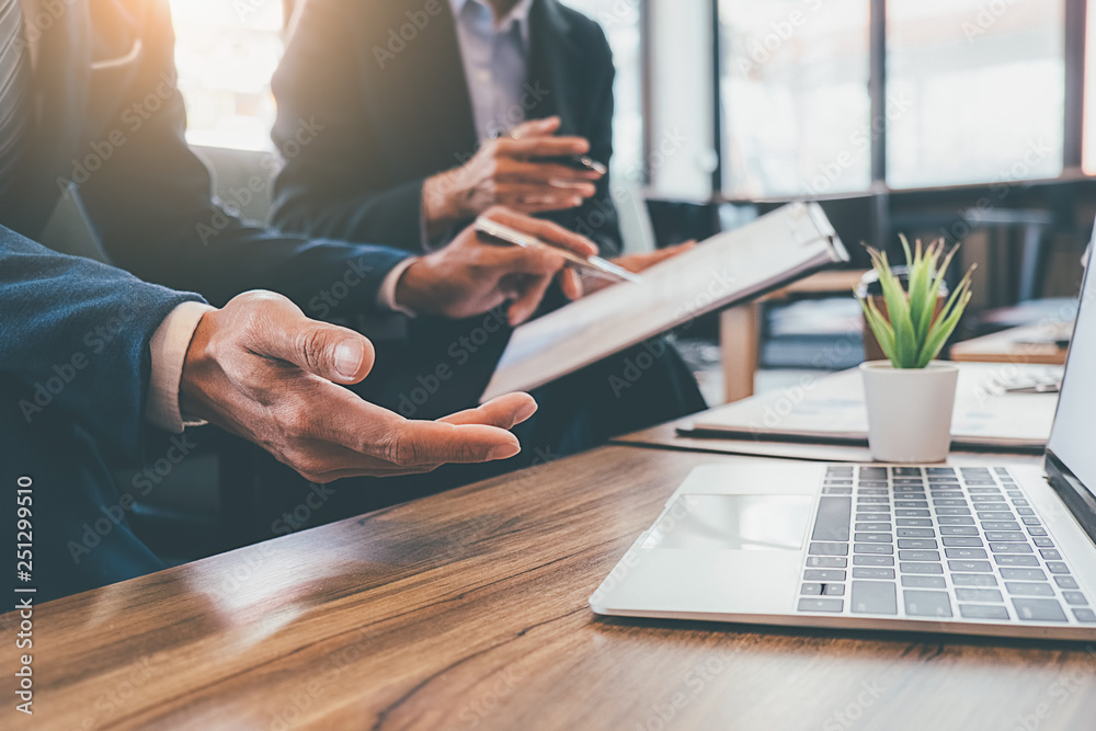 Business concept. Business people discussing the charts and graphs showing the results of their successful teamwork.