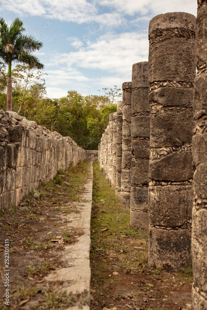 Group of a 1000 Columns once held a great roof to shelter the market underneath is found on the grounds of the Maya Ruins of Chichen Itza Mexico