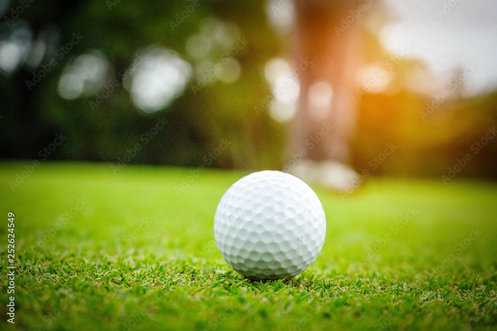 Golf ball on green in beautiful golf course at sunset background. Golf ball on green in golf course at Thailand