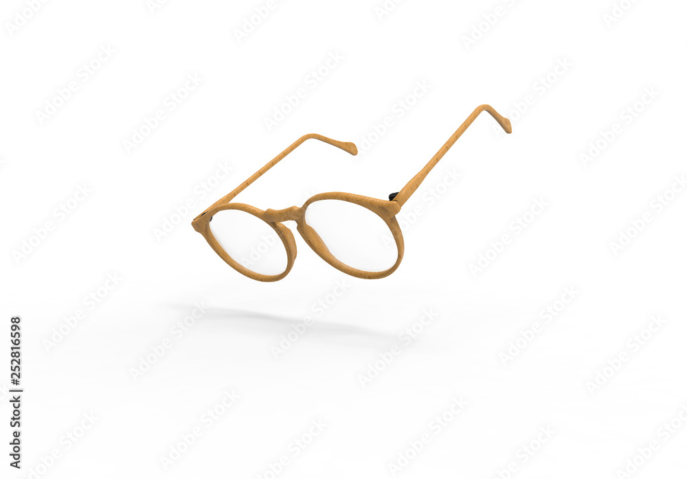Studio shot of flying Wood glasses with shadow