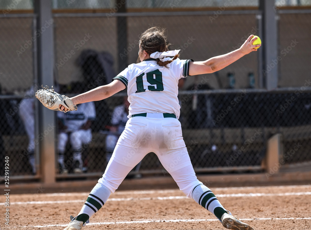 Young girl playing fast pitch softball