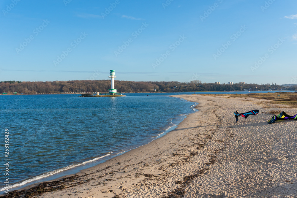 An einem Spätnachmittag im Winter Spaziergang am Falckensteiner Strand in Kiel Friedrichsort bei untergehender Sonne