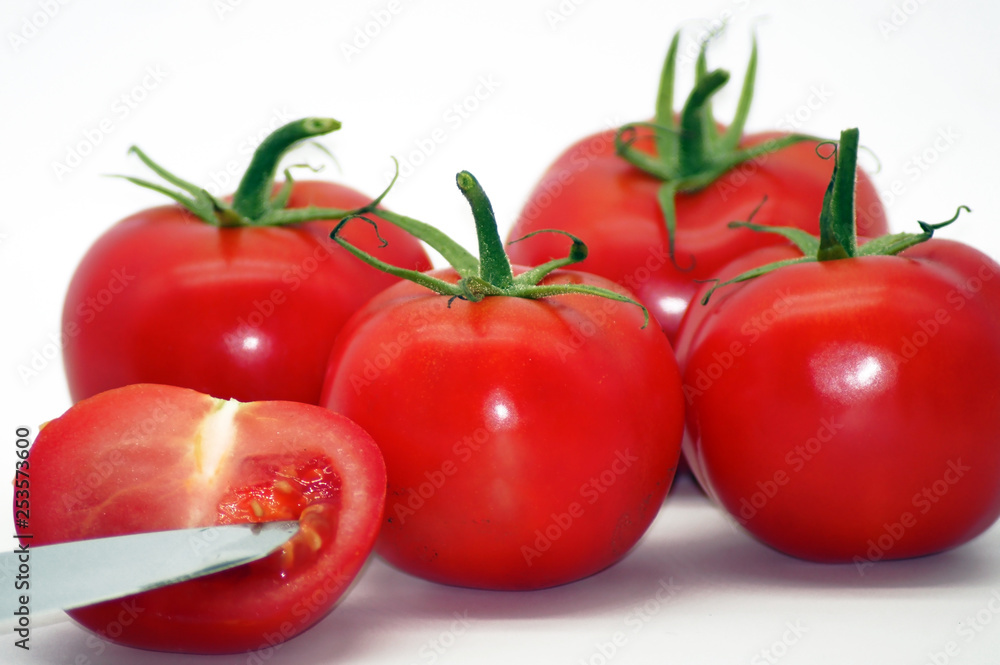 Rote Tomaten freigestellt auf neutralem Hintergrund