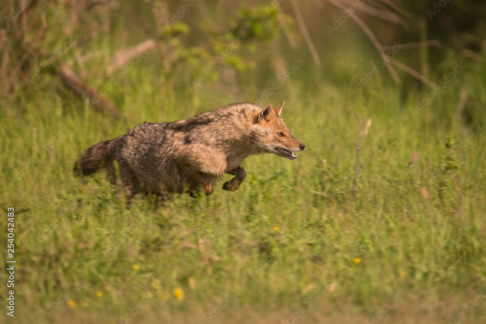 Ein angreifender Goldschakal vertreibt einen Konkurrenten