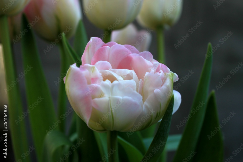 Beautiful delicate pale pink fresh natural art tulip spring macro