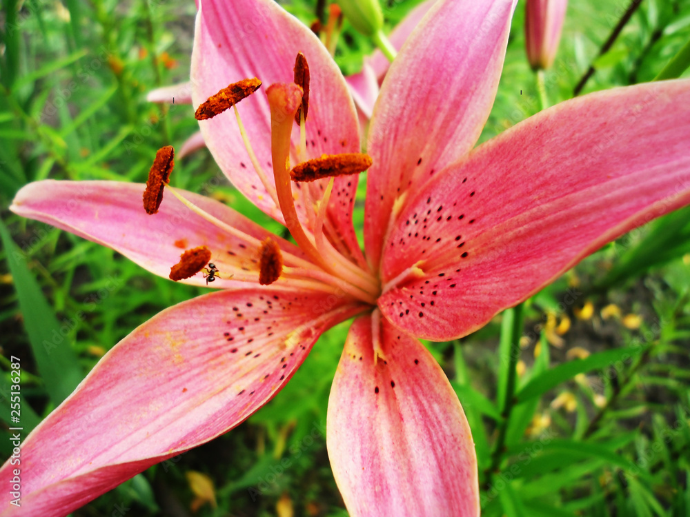 Beautiful fresh fragrant blooming gently pink lilies in the garden, in the summer in the garden macro