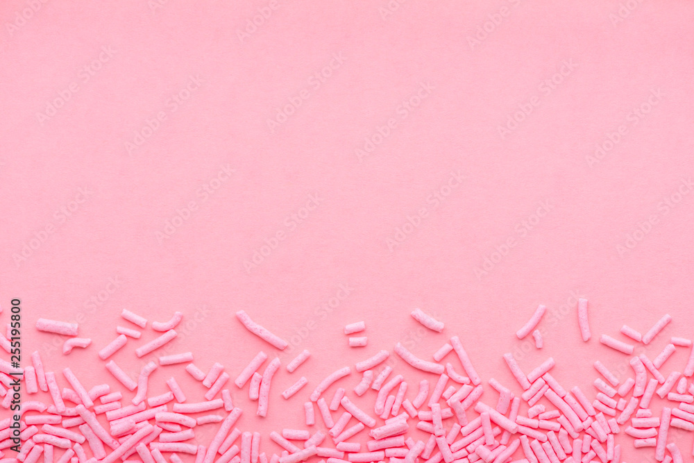 greeting background of soft sprinkles over pink, festive invitation for Valentines day, birthday, holiday and party time, copy space