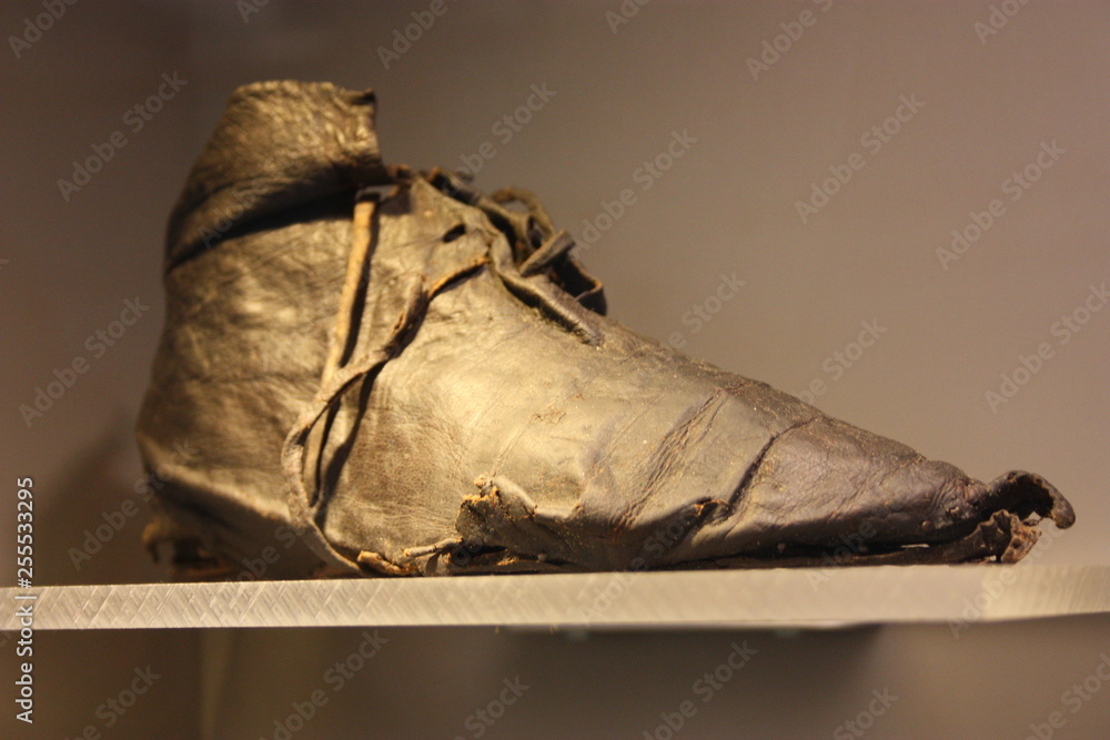 old calzale. a single shoe of some ancient times preserved for the sake of history in the central library of Rotterdam
