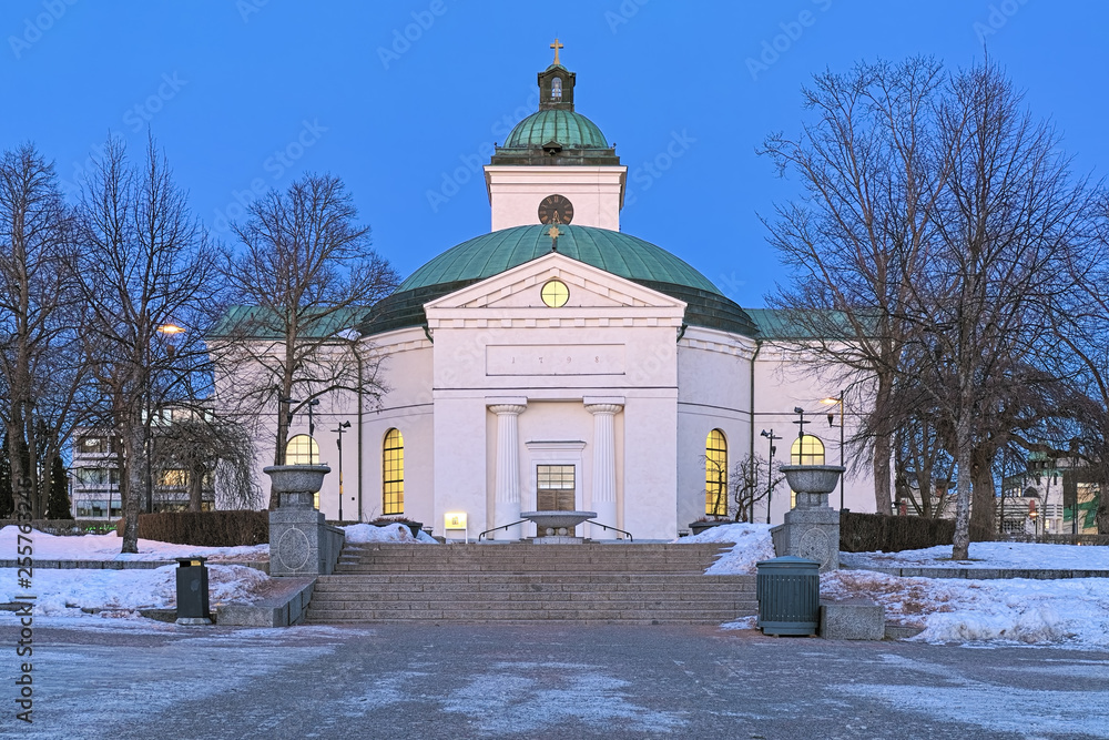 The main church of Hameenlinna at winter sunset, Finland. The church was built in 1792-1798.