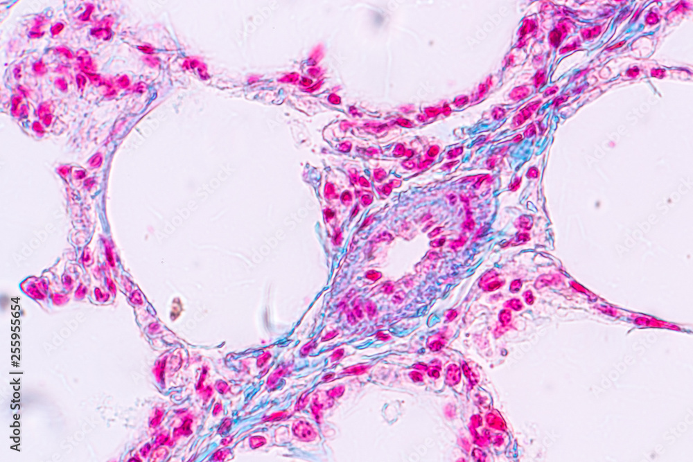 Concept of Education anatomy and Human lung tissue under microscope, The lungs is organs of the respiratory system in humans.