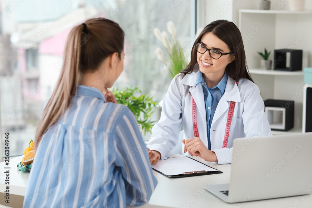 Young woman visiting nutritionist in weight loss clinic