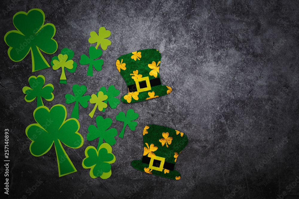 St Patricks day, festive leprechaun hat and green Shamrocks