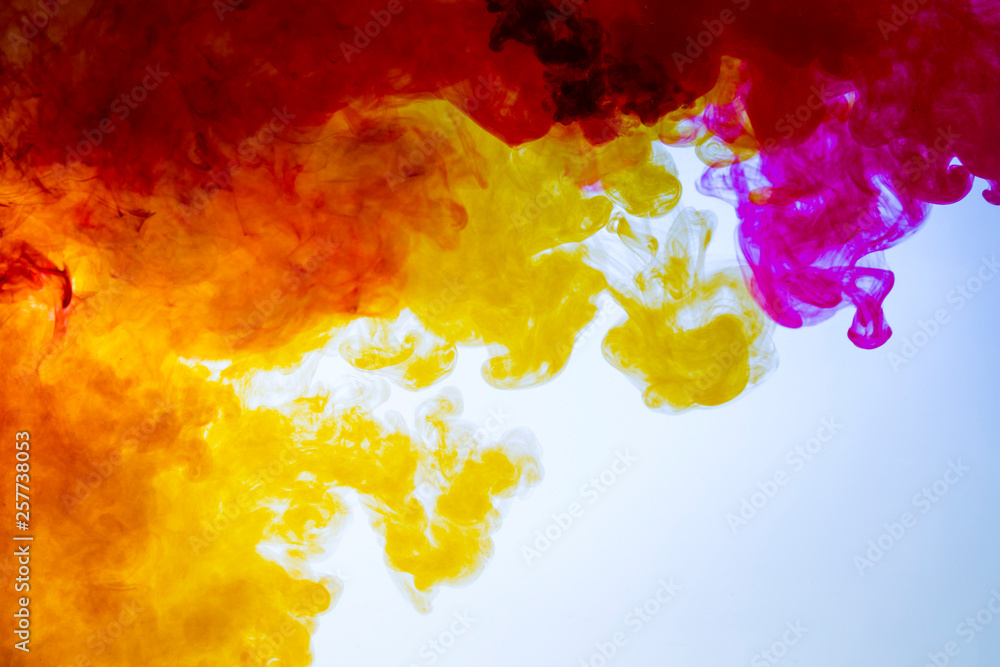 colorful paints dissolve in water, abstract background