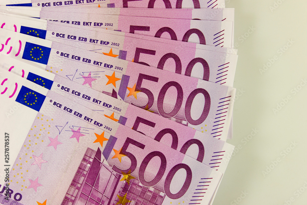 A stack of banknotes of 500 euro, background close-up.