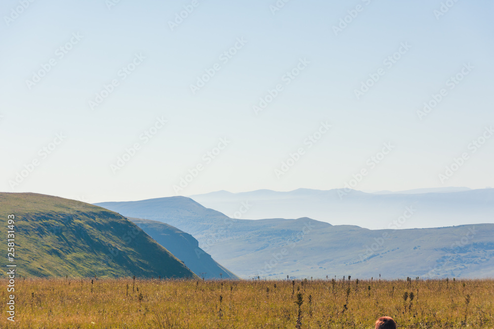 View of the small mountains at dawn in summer on the way to the Bermamyt plateau