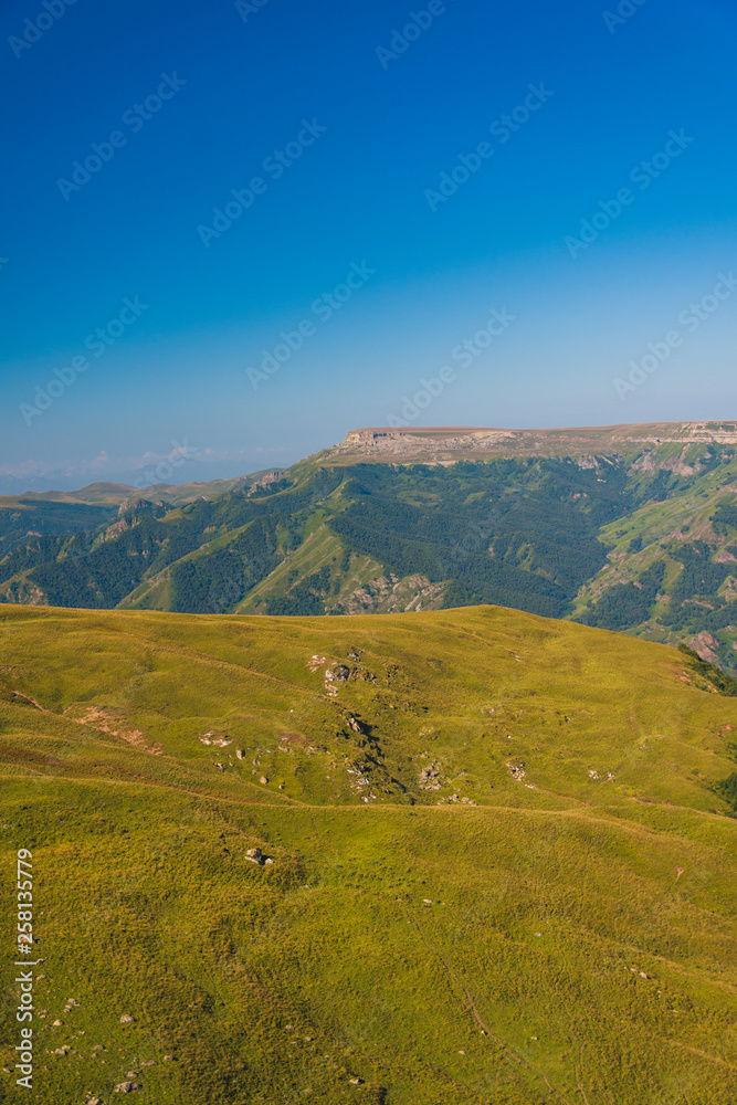 View of the small mountains at dawn in summer on the way to the Bermamyt plateau