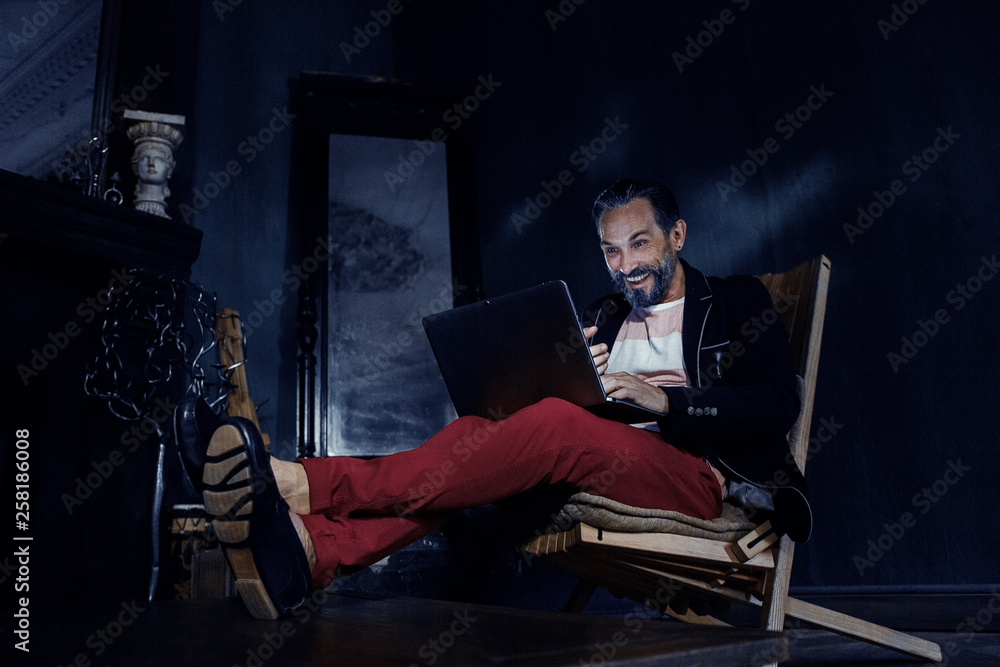 A Bearded Man Freelancer in a Black Jacket With a Beautiful Appearance.