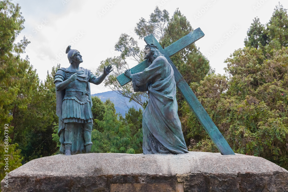 Bogota statue representing Jesus is made to carry the cross on Monserrate mountain