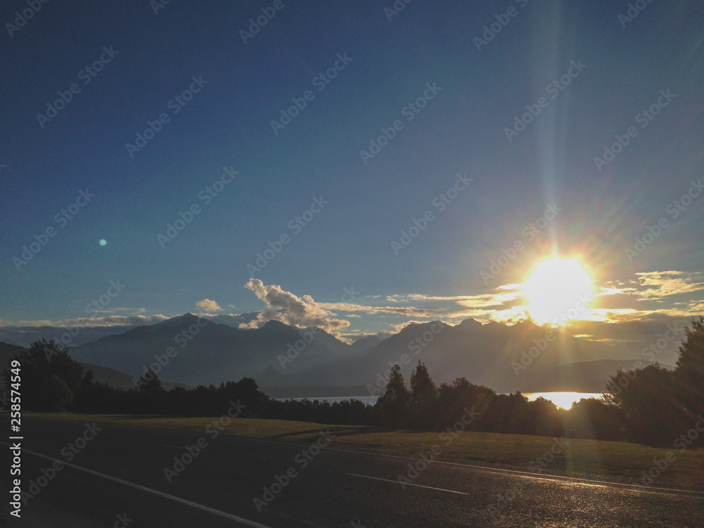 sunset at Lake Manapouri, Fiordland National Park, South Island, New Zealand