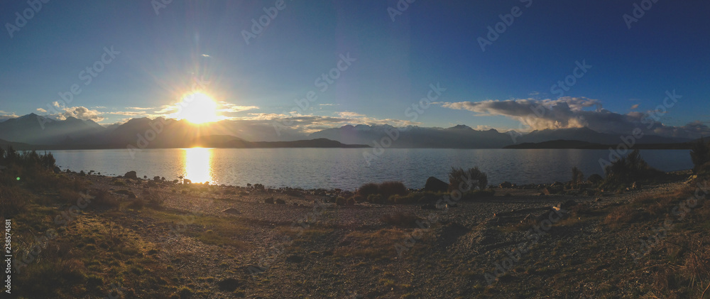 sunset at Lake Manapouri, Fiordland National Park, South Island, New Zealand