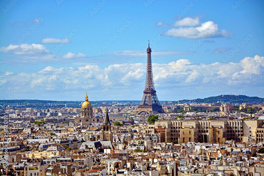 Aerial view of the Eiffel Tower from Notre Dame de Paris