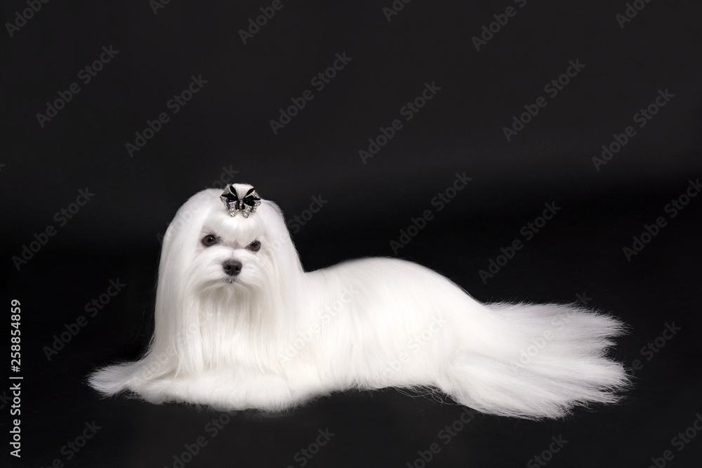 maltese dog on black background