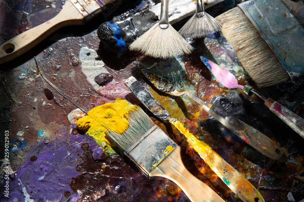Künstler Pinsel auf einer Palette mit vielen bunten Farben
