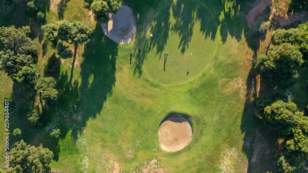 Aerial drone photo of famous Golf course in Glyfada area next to abandoned Elliniko airport, South Athens riviera, Attica, Greece