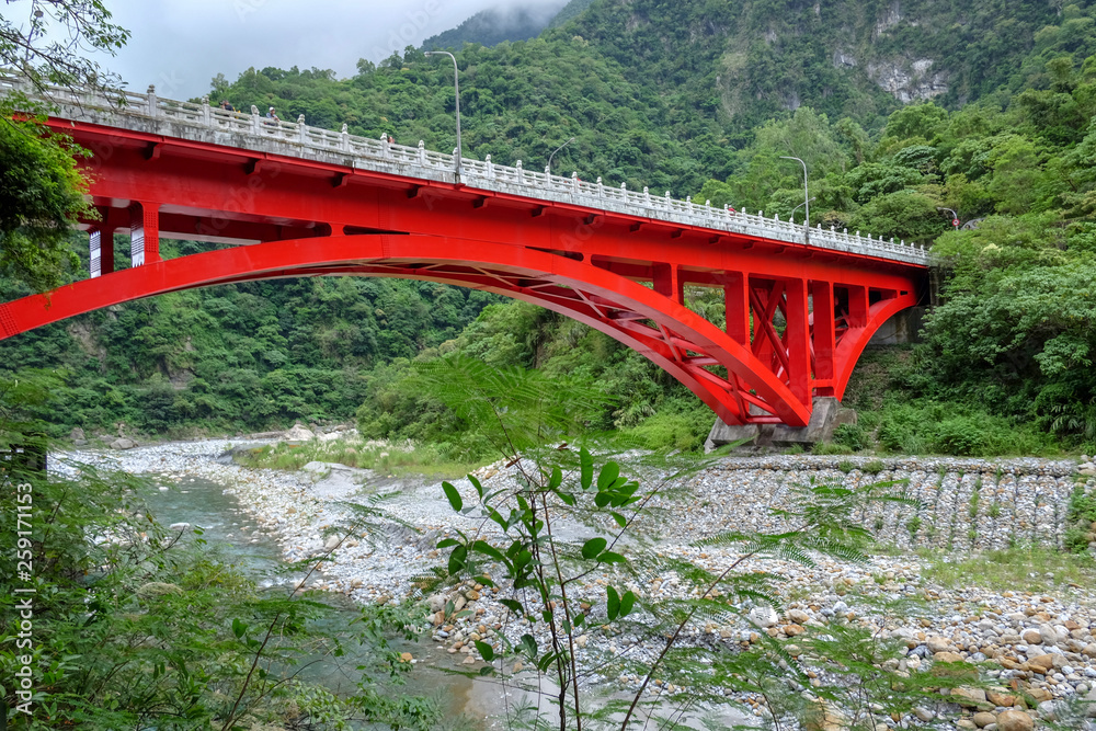 Landscape View in Taroko red bridge, Taroko national park, Hualien, Taiwan.
